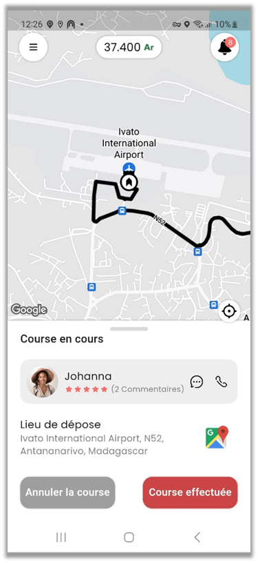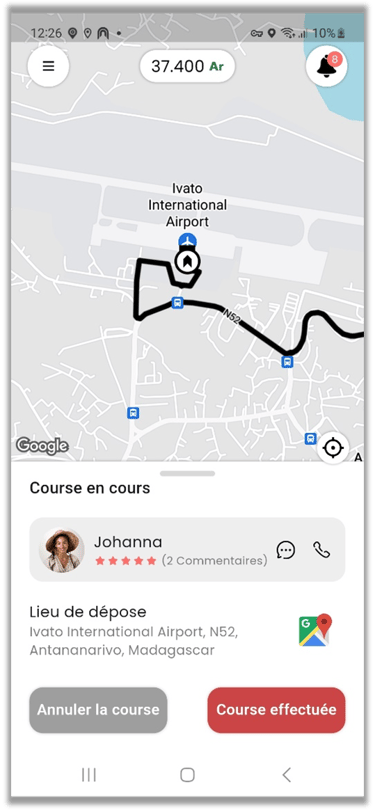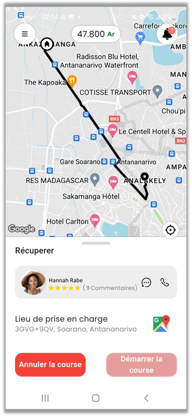 Acceptez une course : L'application Misy Driver vous connecte automatiquement avec les passagers disponibles.