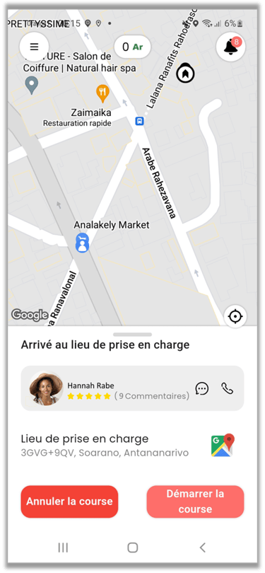 Dès que le passager est à bord, cliquez sur « Démarrer la course ».