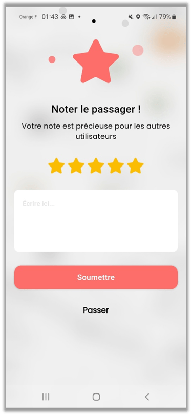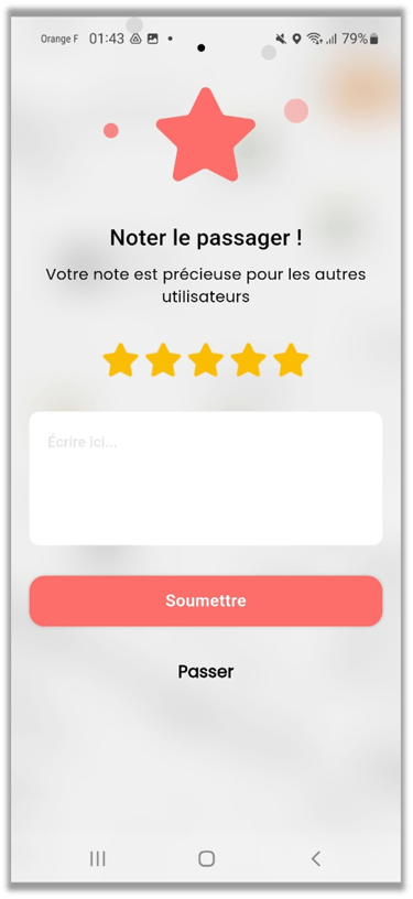 Selon le déroulement de la course, vous pouvez attribuer une note entre 1 et 5 étoiles (1) au passager.